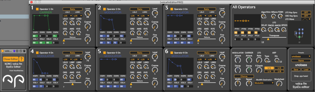 This Max4Live MIDI device lets you control all parameters on your KORG Volca FM synthesiser via MIDI CC and MIDI SysEx (System Exclusive) messages.